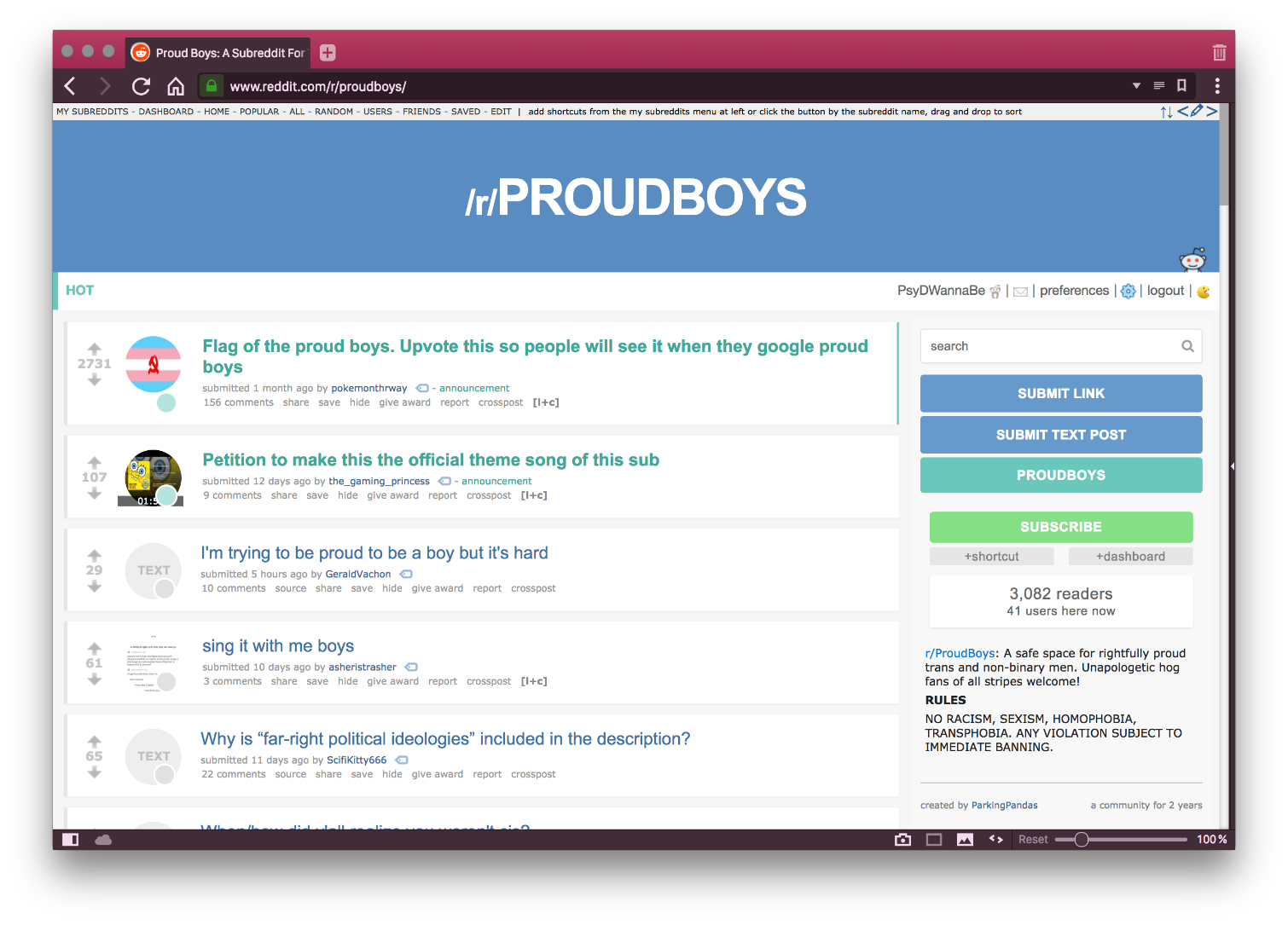 Trans and r/ChapoTrapHouse comrades took over the r/proudboys subreddit and turned it into a positive transmasc space! :D