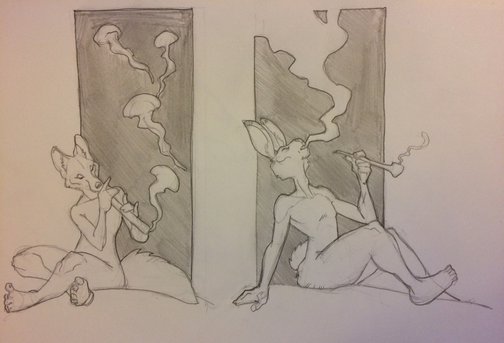 Furry from today. The kit fox is vaguely based on a friend!