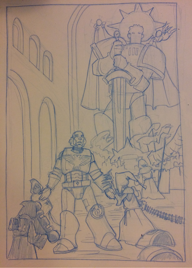 some Warhammer stuff for a change of pace! Tightened up a superhero drawing from Thursday.