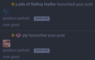 @sharkNserg i want to interact with the other river more but they're on an instance awoo doesn't federate with yet :<