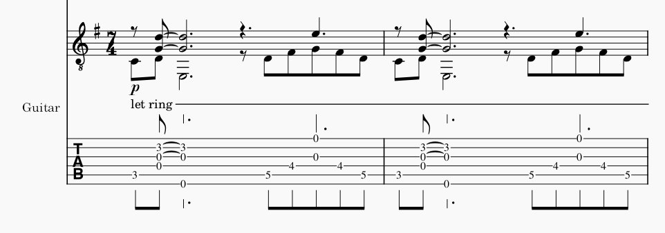 Tablature looks really hard to read, but I imagine it's way easier if you're used to it. ....does that staff have six lines?