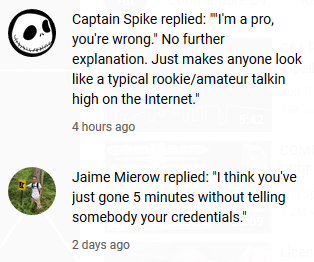 a youtube comment we made seems to have gotten popular (just saying "speaking as an electrical engineer, this video is painful", on a video where a chemist makes a mess of wiring up UV LEDs and blows several of them and several power supplies--his attitude toward it is more "well that sucks, should have done more research", not like devastated or anything, so i don't think we misread the room or anything) and we have gotten several replies making fun of us for it and i don't know why?? i don't understand why people seem to be upset at us for it???