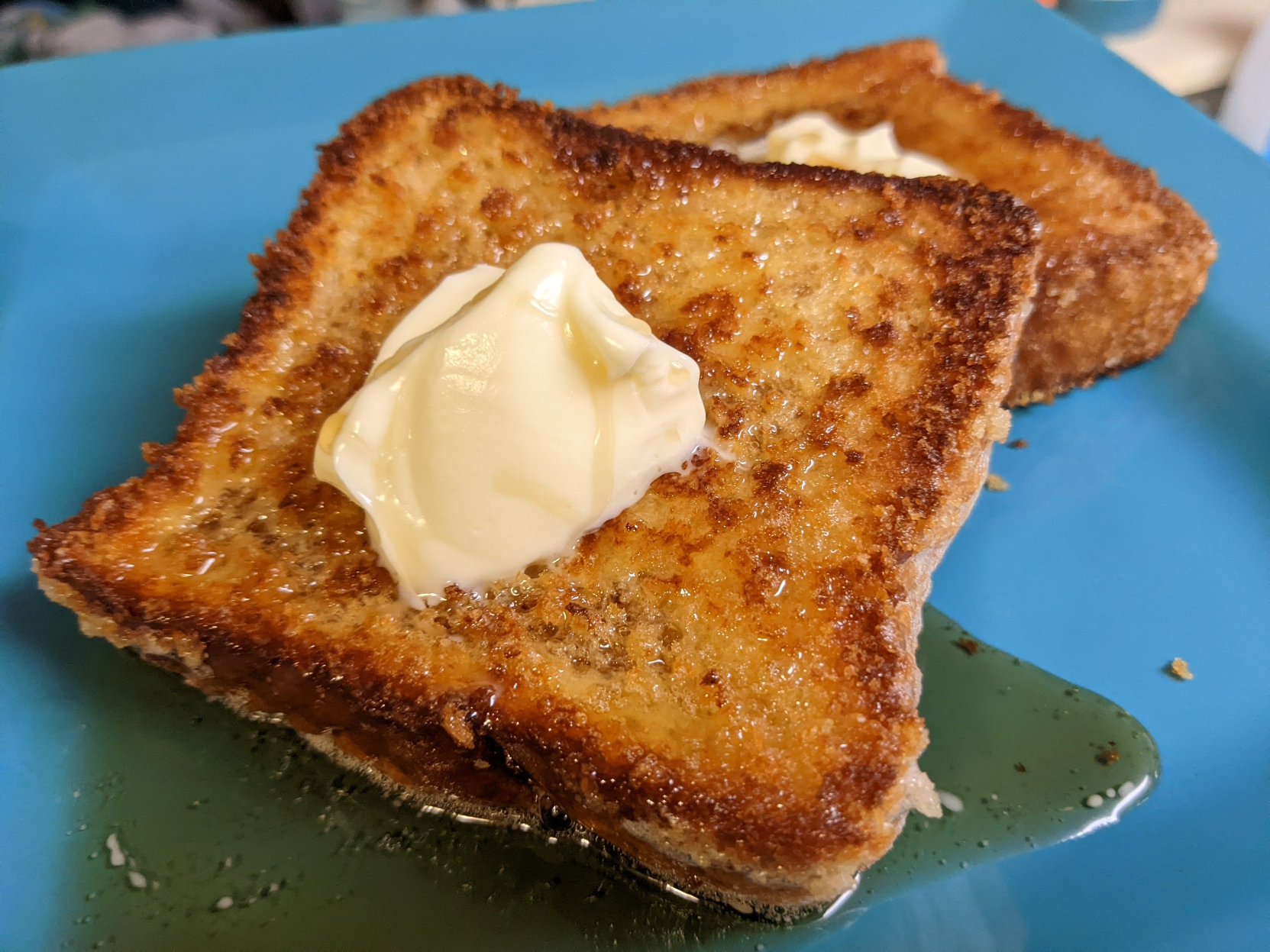 Decided to up my french toast game today! The way I was making it before was VERY lazy and fast, and the result, while I still like it, was very sponge-y and soft. I wanted crispy and thick. Everything I did to achieve that worked out marvelously.