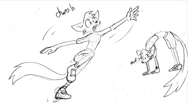 Just some scribbly Kae sketches as I figure out how this whole "line of motion" thing works. Dropping from 4 legs down to 2 can be a little clumsy at first. Expect an actual post later tonight; these are just doodles I thought came out well.