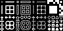 Felt doing some more pixel-y stuff; here's a set of box-drawing characters meant to be cut apart into 8×8 blocks, colored, and arranged into all kinds of diagrams, charts, and more artistic kinds of things. As usual for my pixel art, there's one here at actual size and another at 4× zoom so you can see the detail.