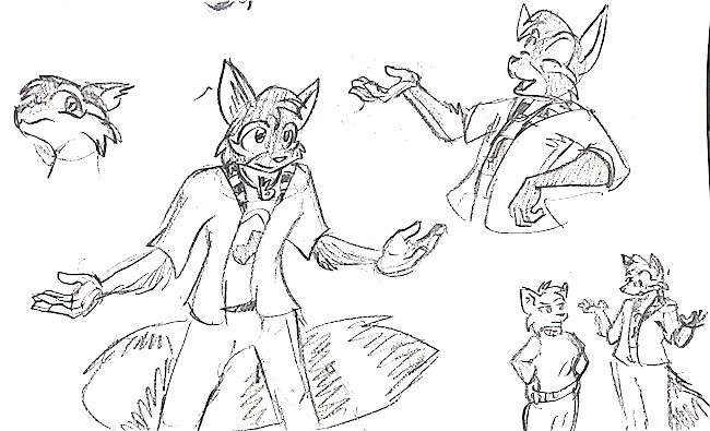 Sketchy redesigns of BJ, now looking a bit slimmer than usual. He calls this more ordinary shape "more presentable" but Lillian isn't buying that he'd make himself this normal-looking without something hidden about it, although she has to admit that he still came out pretty cute.