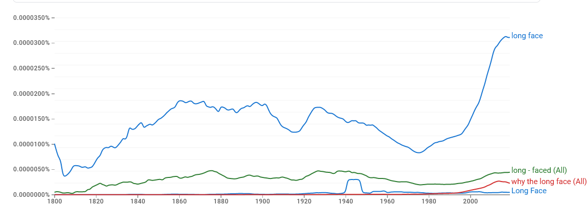 @codl "why the long face" is a stock phrase to ask why someone looks a bit sad, with a nuance of trying to cheer them, though i think it went out of fashion a while ago