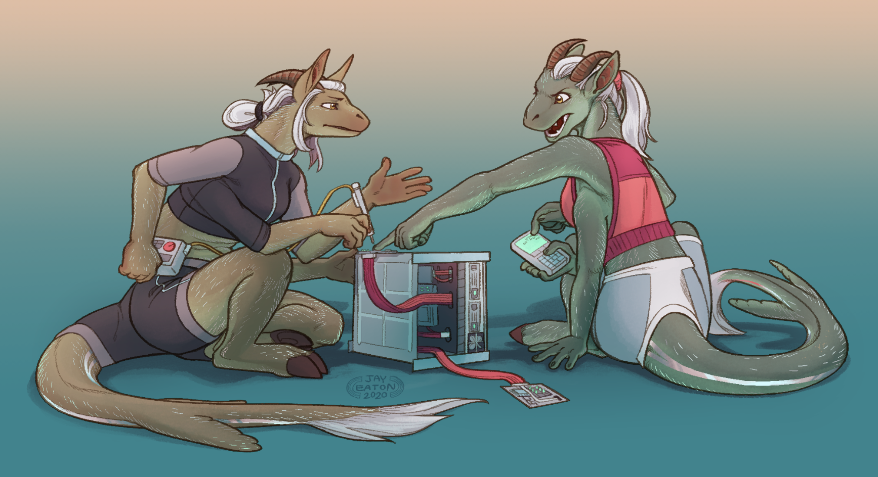 A wonderful piece by Jay, who helped us polish up a neat look at the Caphrinica! Trying to capture the basics of Caph as critters and their 'essence' as individuals; I think it came out lovely! (🎨 twitter.com/JayRock5858 )