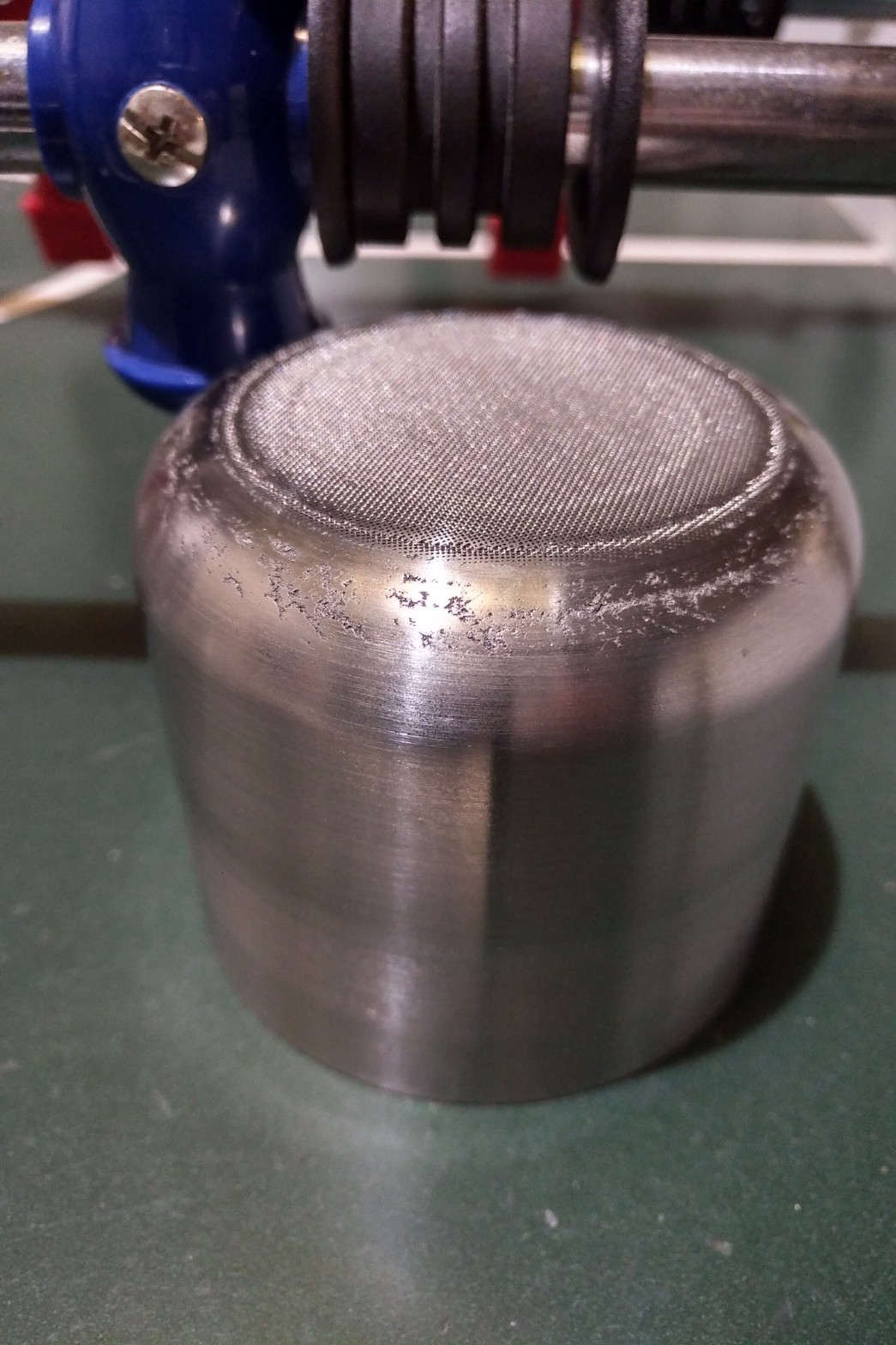 So this chunk of metal is 500 pieces of stainless steel wire mesh compressed together using a similar process to Damascus steel. It's going to be used as a heat sink for a wind turbine. The process through which it was made created a thin metal layer on the outside which channels heat through the centre. Anyway this will sell for about one thousand dollars and costs slightly less than that much to make.