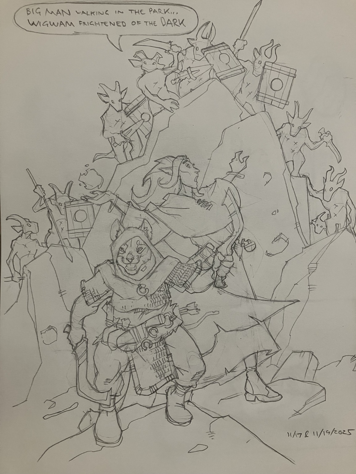 The other art thing I did today was I listened to even more of the Beasties and inked, scanned, stitched and did a little bit of editing on some characters I had lying around October's sketchbook. #drawings