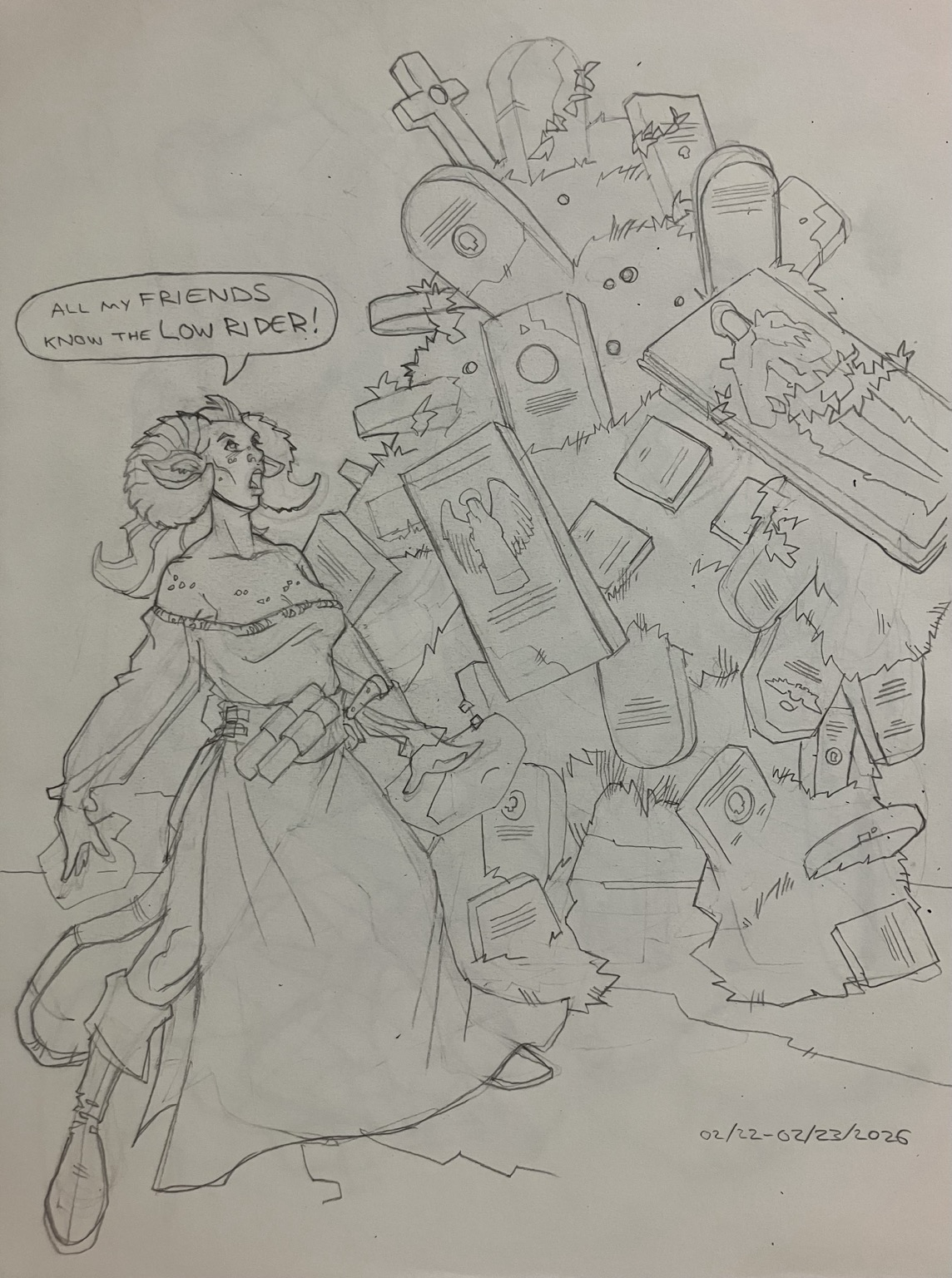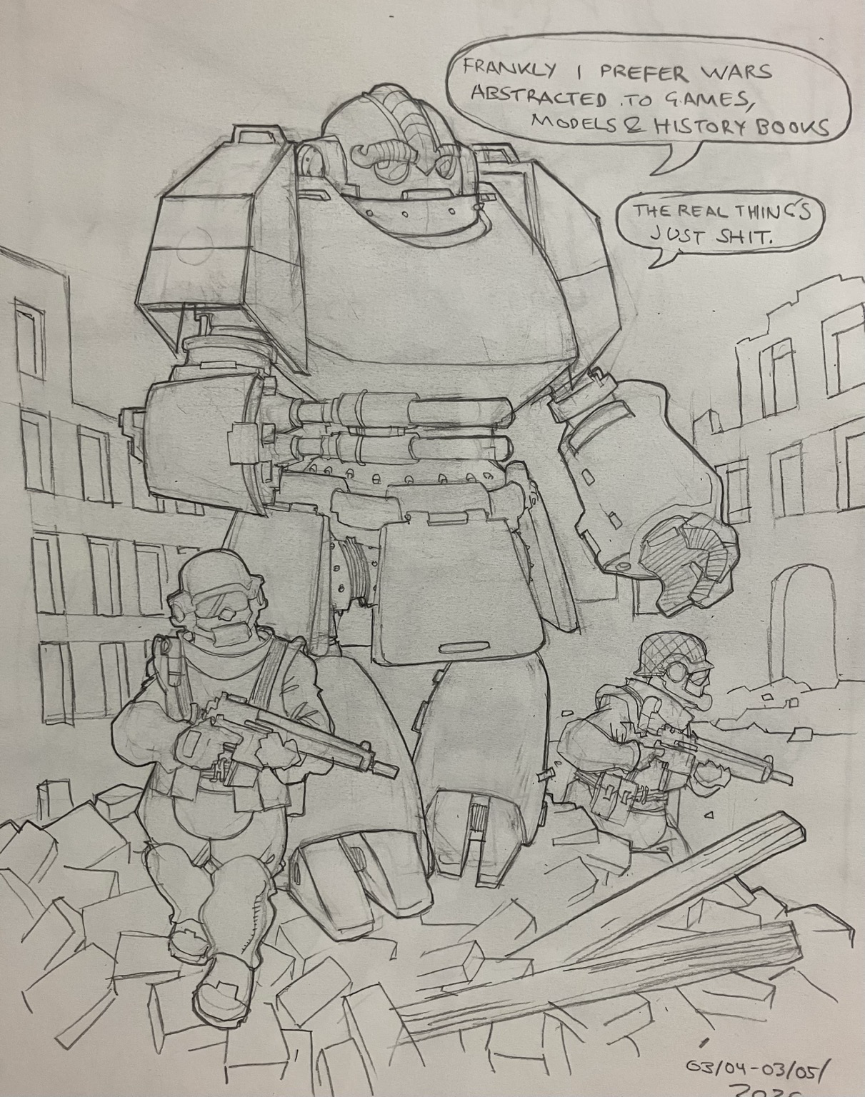 Tonight’s #drawings, I’m real mixed about the dwarf mecha pic; maybe I should stay away from anything that looks vaguely modern military, it leaves sort of a bad taste. But then there’s only one way to find out if you like drawing something right?