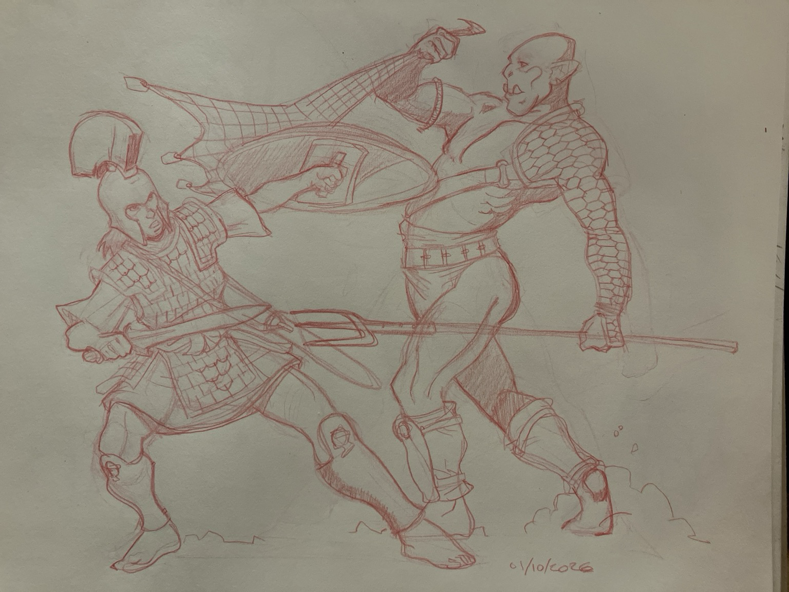 #drawing with Ticonderoga carmine red. Feels good but not great; the softness is nice and it leaves little residue on the page like graphite pencils but the lead is somehow very brittle and prone to break, and I’d forgotten that.