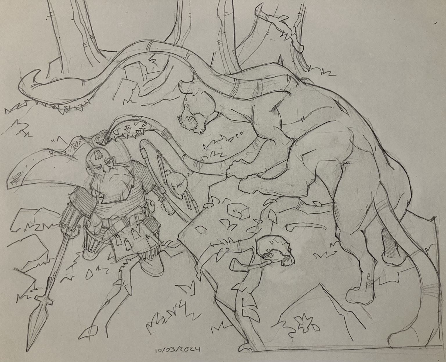 Anyway have some from Tuesday. Riffing off the classic “barbarians as excuse for undressed girls with big hair.”