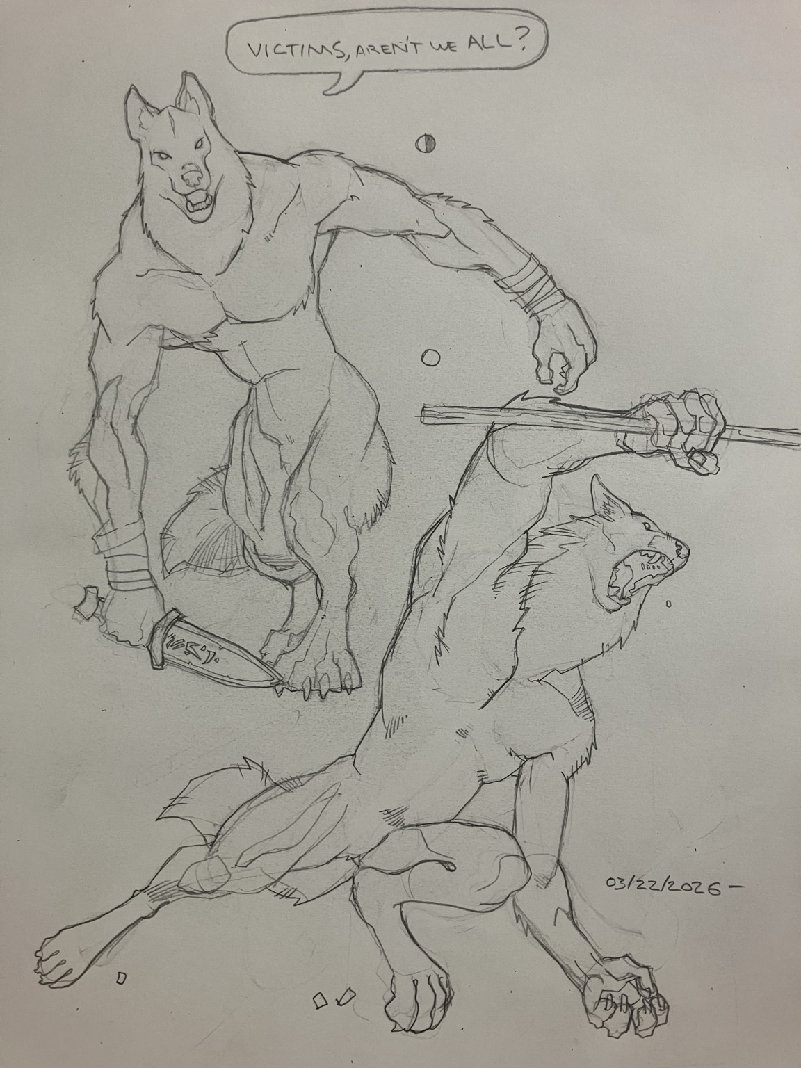 "And my rapier, parrying dagger, the obvious throwing daggers on my belt, plus both boot knives and the spring loaded sleeve knife."