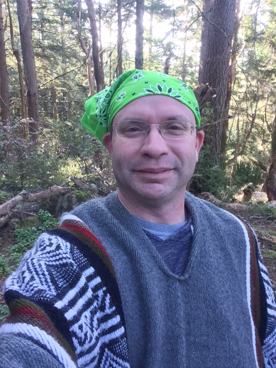 Just some random forest and a selfie; temperatures were in the 40s the entire time I was there, maybe lower at the start.