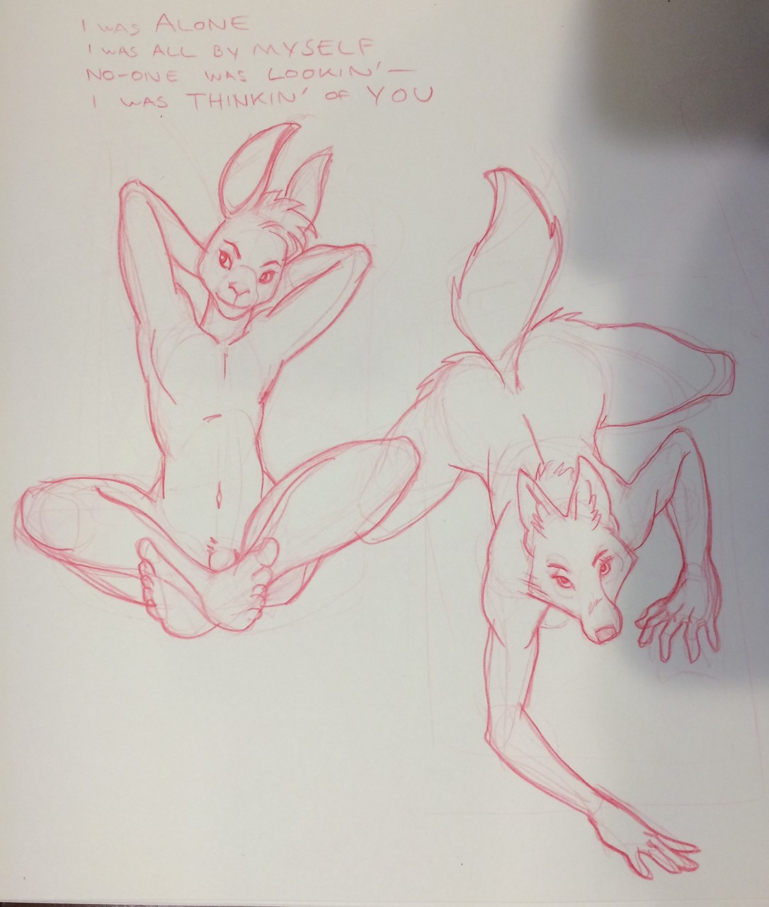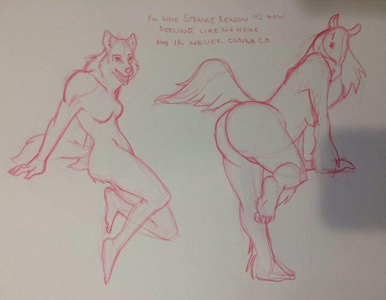 #drawings some furry pinups and a #dnd winter wolf. Cw for mild nudity, fantasy violence.