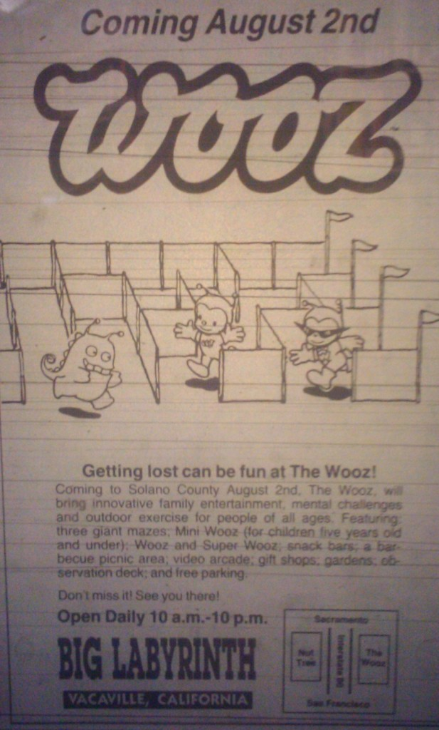 The location of the WOOZ was also problematic: Vacaville, California was not known for its mild climate. The outdoor maze was a summertime destination, and the bright, merciless sun often baked people to the point of exhaustion. This lead to people abandoning the maze frequently through fire exits, and generally not enjoying their time being lost.