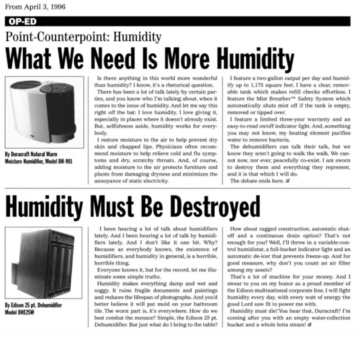 @mawr I am suddenly reminded of The Onion's wonderful Point-Counterpoint with the humidifier and the dehumidifier...