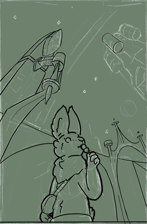 Practicing cool backgrounds. Perspective is wonky but I think this will look cool once it's colored...