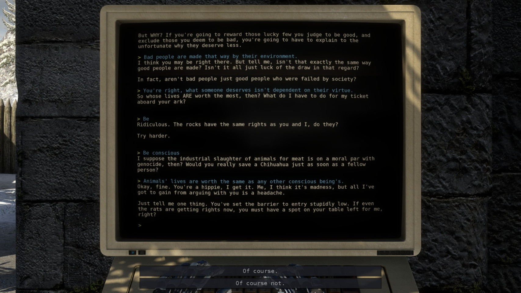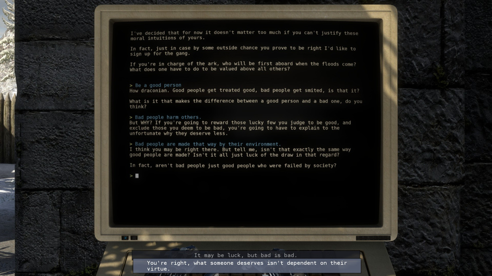 I've been playing The Talos Principle (after forgetting about it for ages) and some moral quandaries probably aren't think of "bad people" in terms of literal nazis.
