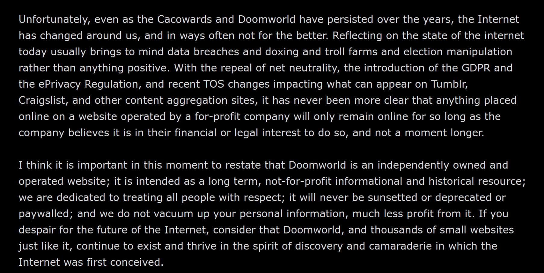 It's not like they needed to stay up. Metrics aren't important, and some of that personal stuff doesn't need to remain on a pseudo-public archive.