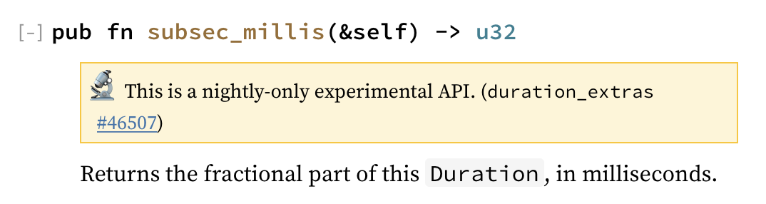 I love how in Rust, milliseconds are considered a bleeding-edge, experimental feature. Everything is either seconds or nanoseconds. awoo.space/media/fgl53ZFHHNof3