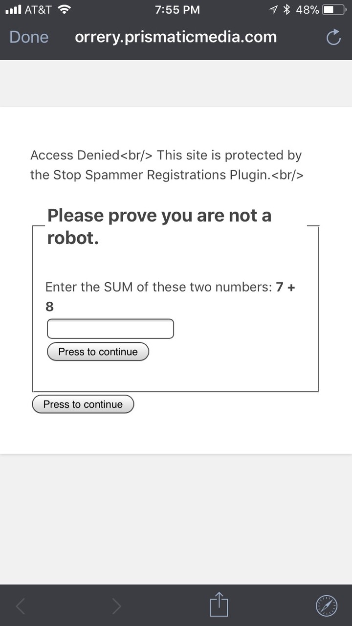 I wonder if it’s any of my content blockers or the fact that I’m on WiFi (presumably without a static IP) that’s triggering the filter