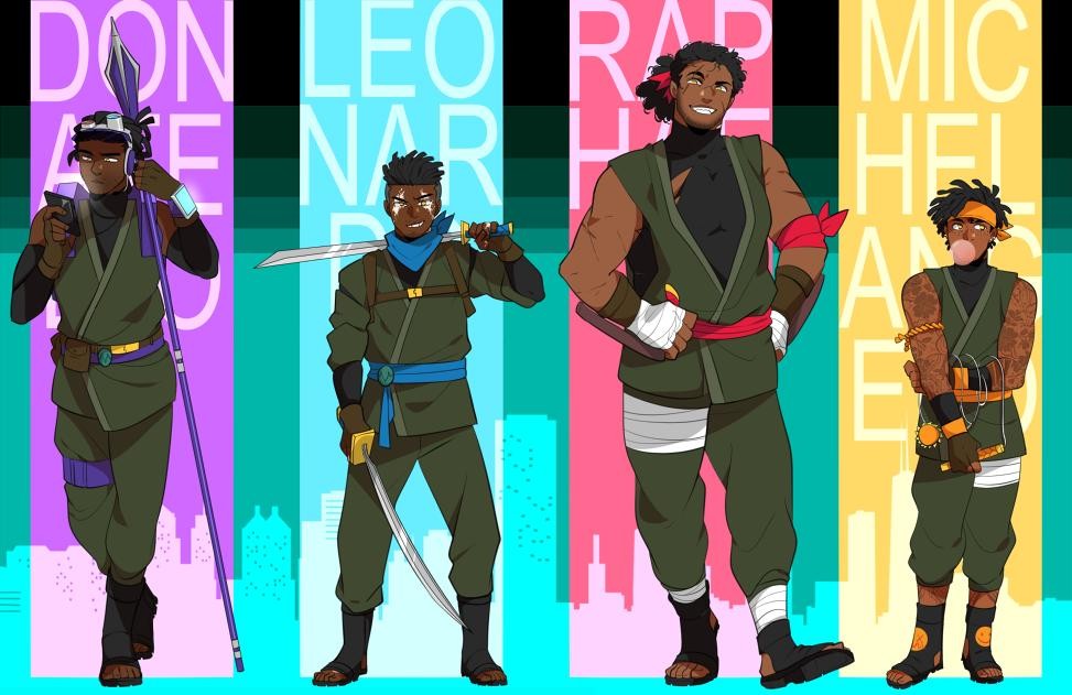 Raph was a bit difficult to do since he's so huge in the show, as long as his biceps are bigger than his brothers head I think I did okay. Also I prefer Leo with his twin swords so I added that in. (Plus a zoom in on their faces)