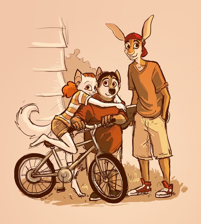 Old art of these kids, I liked preteen Jeordie and Erik’s dynamic of tiny Oompa Loompa dog vs giant gangly rabbit monster