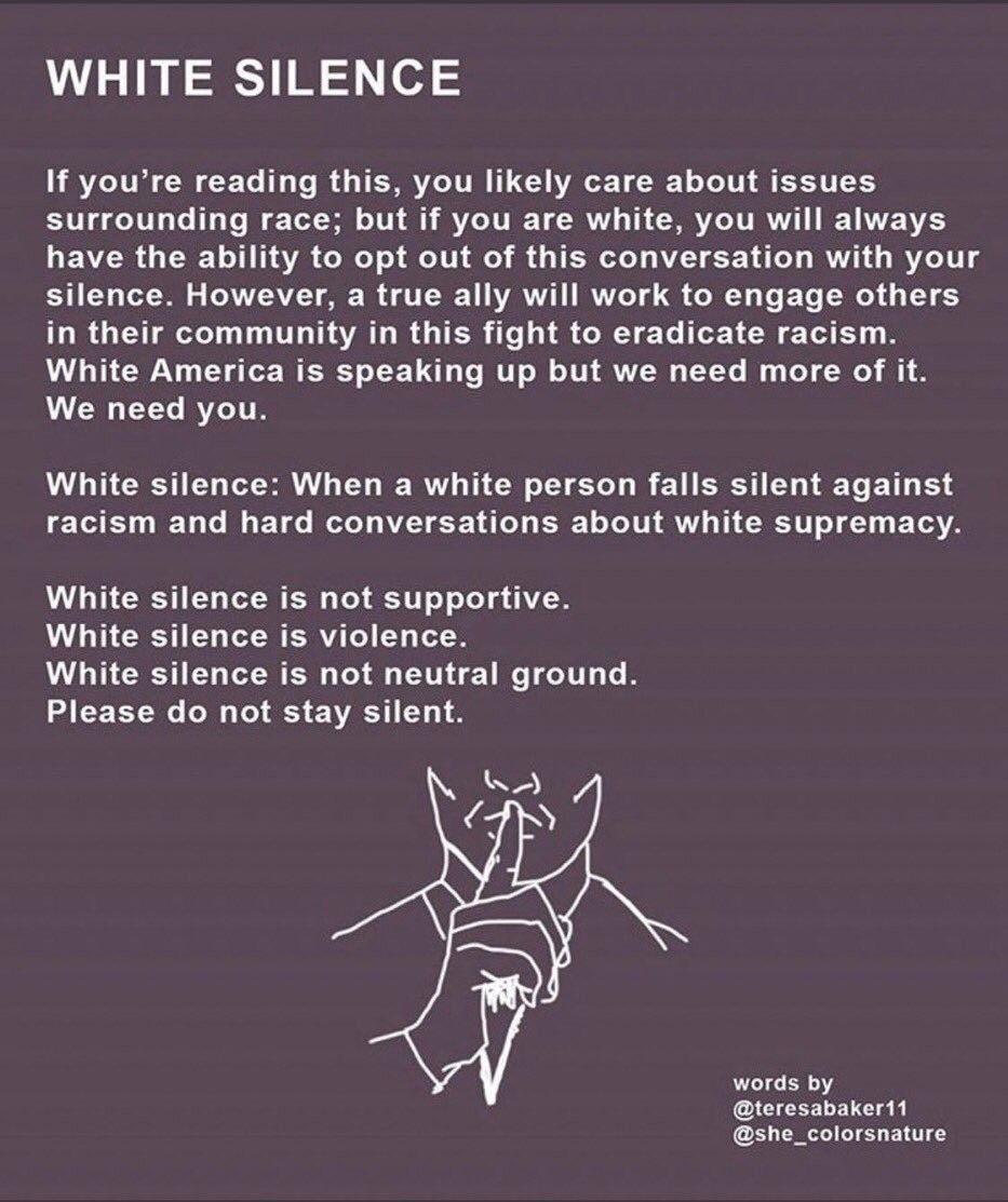 LRT: "White silence is violence" is a bit of an overreach and counterproductive to the message, but the rest still stands.