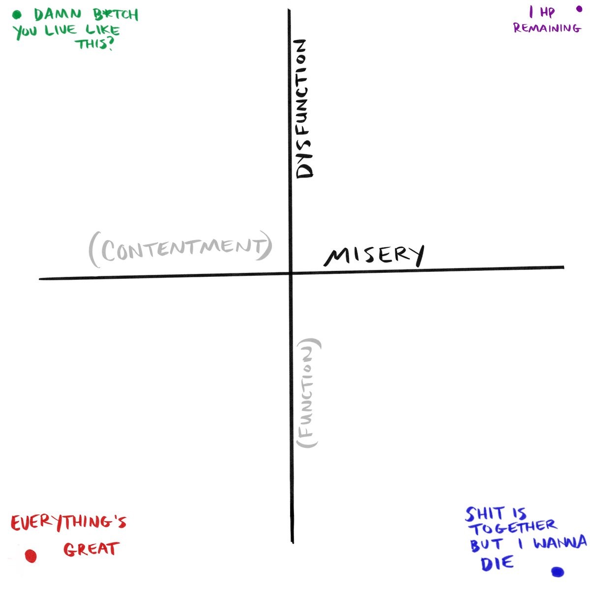 here’s my breakthrough model of mental illness. i find it very hard to answer questions about my “mood” because my “mood” is generally good even if i can’t “eat” or “brush my teeth” so this helps me to conceptualize/explain how i’m doing (“pretty bad”)