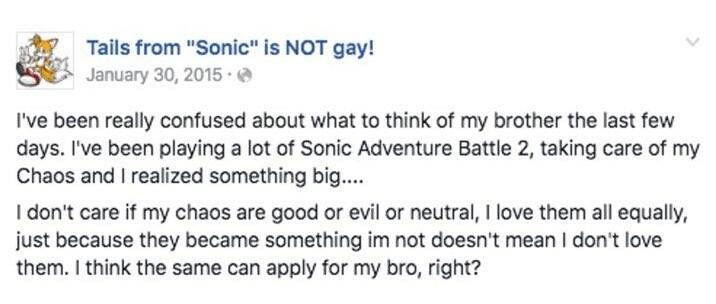 this pride month i'd like to remember "Tails from 'Sonic' is NOT gay!"