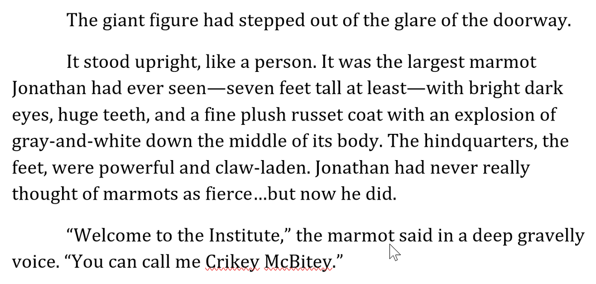 If you bring the talking marmot, bring the talking marmot *hard*. And give the marmot a name the reader can't forget.