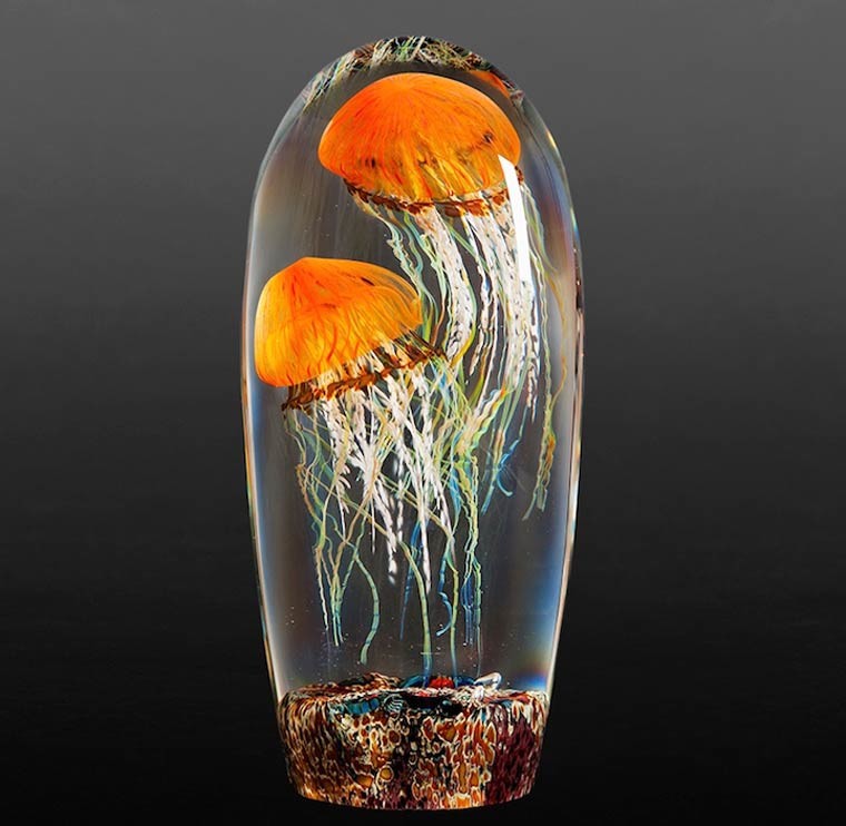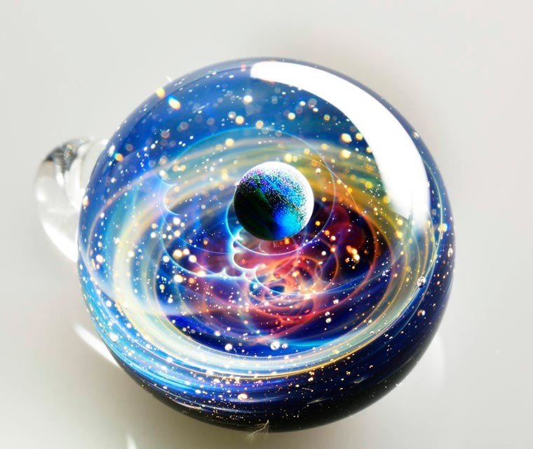 Satoshi Tomizu is a Japanese artist who makes miniature universes (and creatures) embedded in glass