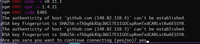 can anyone give me a hint? I think I know what's happening here (git/ ssh tries to get the user to validate the keys but npm doesn't get that) but how do I solve this?