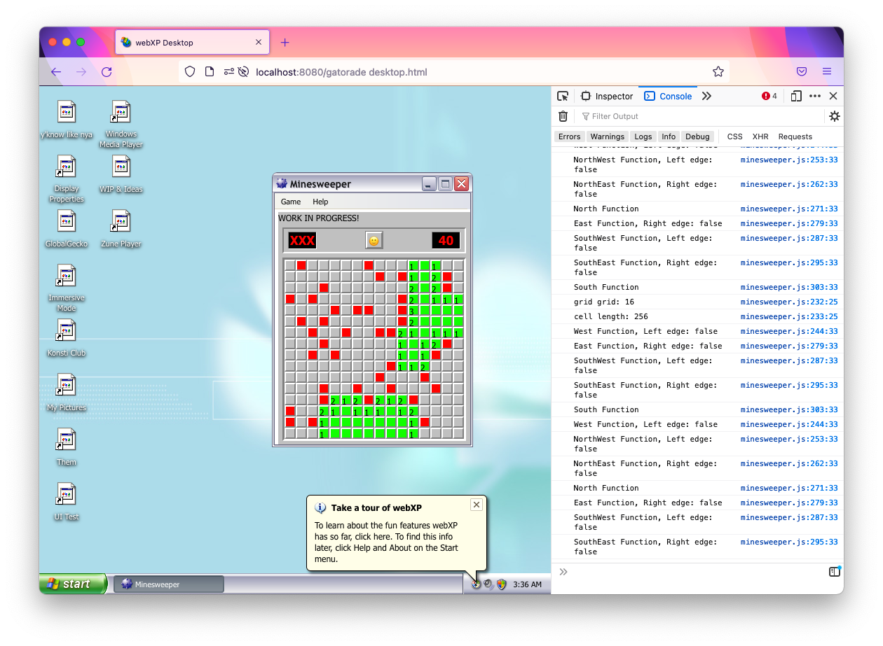just a tiny bit of work tonight, fixing up the minesweeper implementation to kind of work