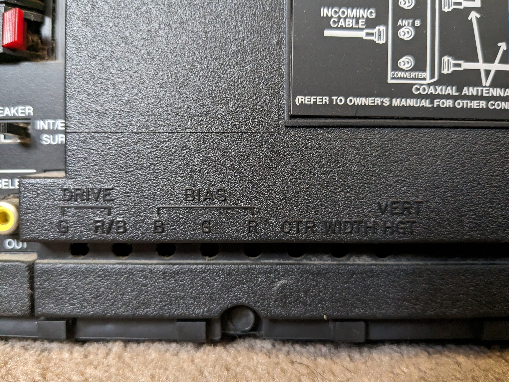 this is the tv. paper with the model number has been ripped off so no idea what it is. also no idea what the inputs are in the 3rd picture, never seen anything like it before