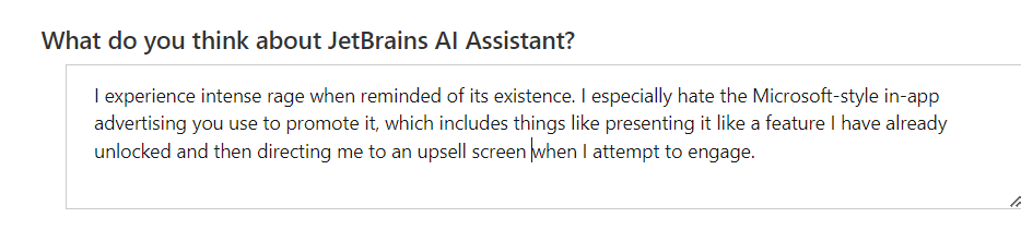 @pyrex I used PHPstorm for the first time today and the first time it showed me was that AI ad (completely worthless for them cuz even if I wanted it – I'm on a work license) and wow, that's a horrible first impression