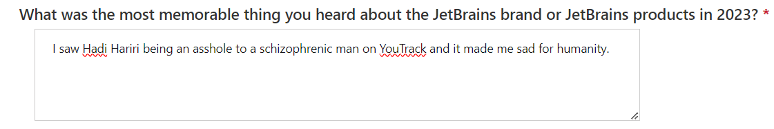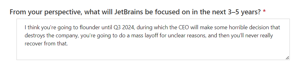 @pyrex yeah, especially in a pretty expensive tool with a good reputation to lose! Like, in VS Code I expect it cuz it's free and Microsoft's vehicle to push their bullshit on people
