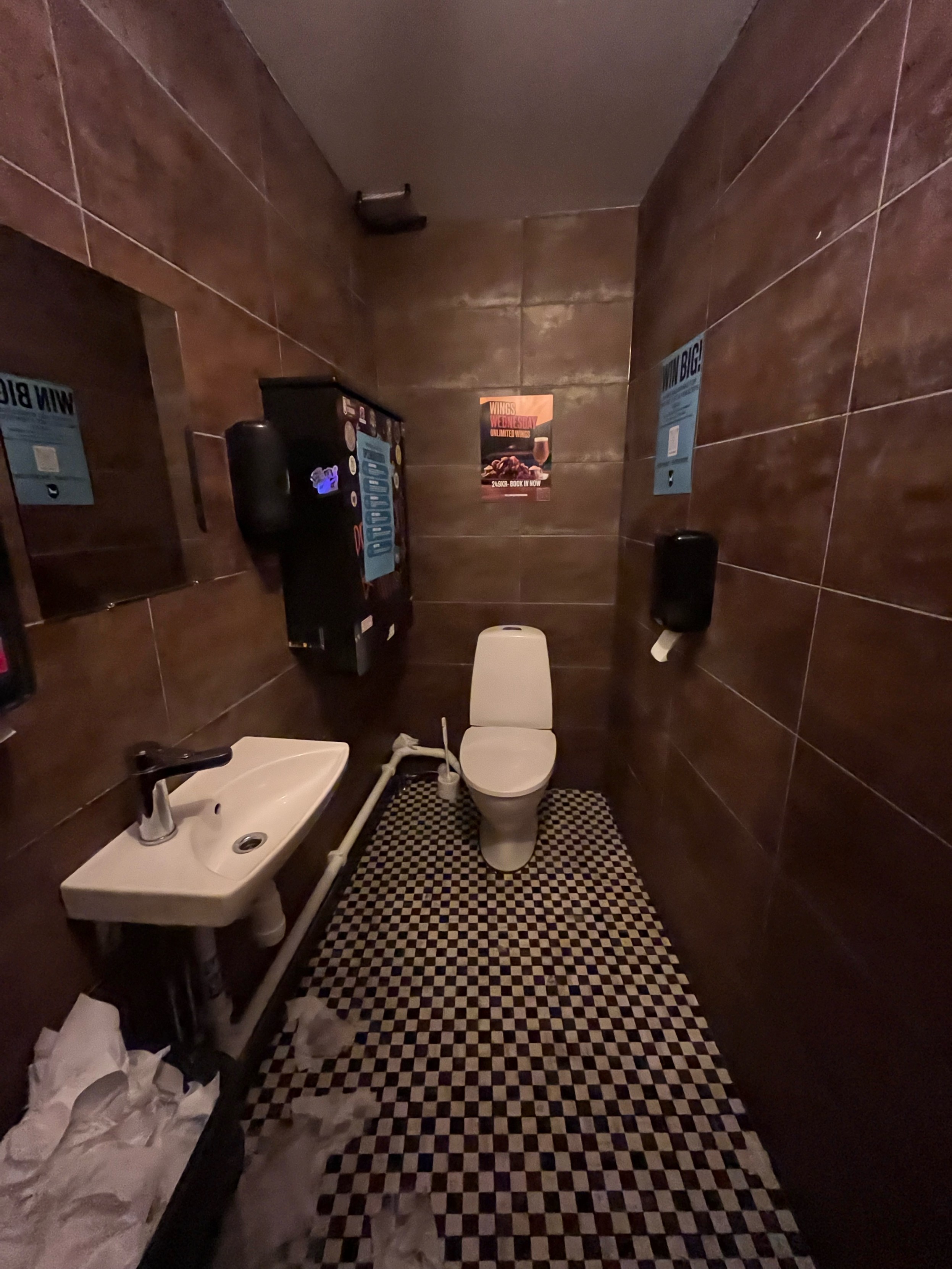 this bathroom feels like purgatory also im drunk off my tits, ama
