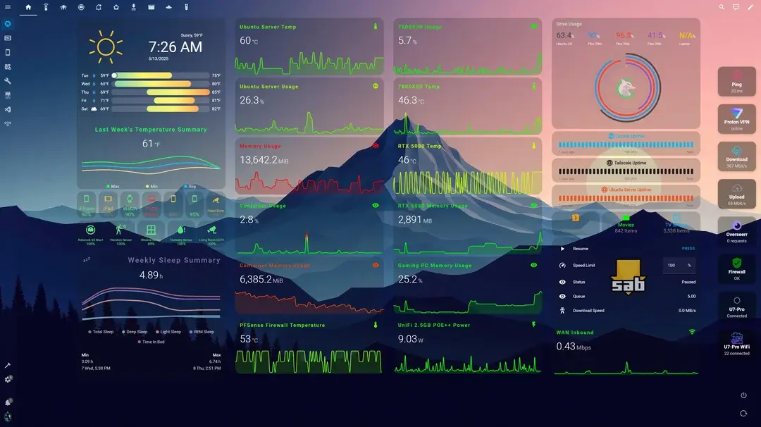 im just now noticing the "drive usage" card that shows the desktop drive, laptop drive, and 3 NASes (3 NAS drives?) all on the same fancy radial bar chart. why