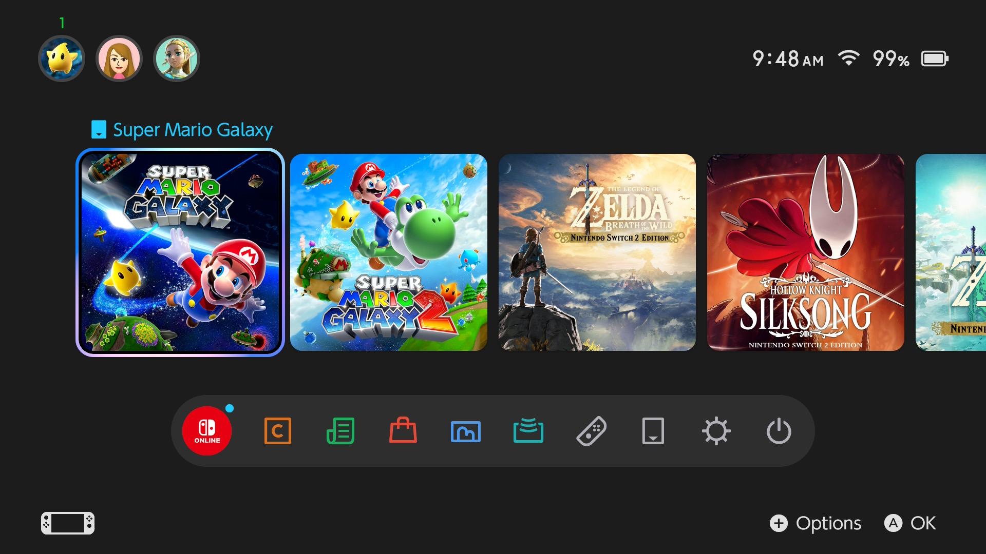 When you put in the Super Mario Galaxy + Super Mario Galaxy 2 game card, it shows as two separate games on the home menu. Has a game ever done that before? I didn’t know that was a possibility.