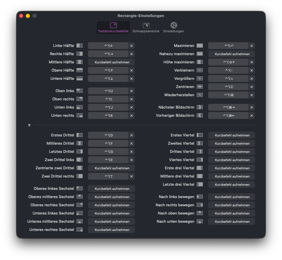 @miriamino you won't be able to install sth like i3 but there's helper programs that let you do stuff like tile windows with keyboard shortcuts (I use Rectangle, pictured)