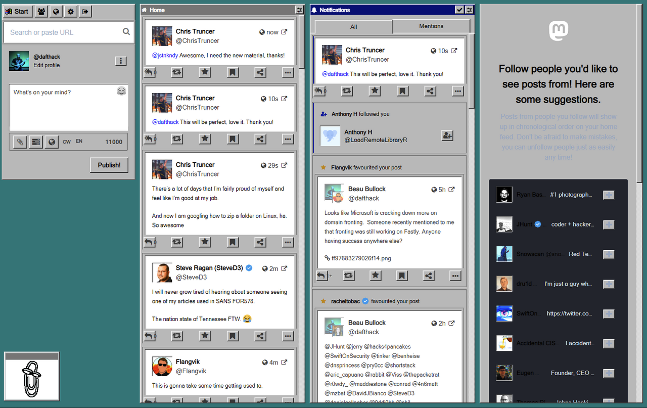 @listeninggarden Masto has theme support but they need to be added by the server admin, there's a pretty cool win95 theme and a bunch of servers come with custom themes
