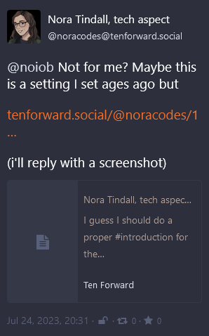 @noracodes Toots have opengraph tags so they can be embeds like every other opengraph-supporting link