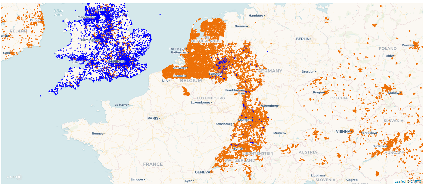 Unitymedia has this map of their "Wifispots" which is a second wifi network their newest routers will automatically open, which is free to use for all of their customers. What's interesting is that this also maps where people subscribe to their service. I'd love to see someone who knows their stuff analyze this map (it only loads if you allow it access to your location fyi) unitymedia.de/privatkunden/int