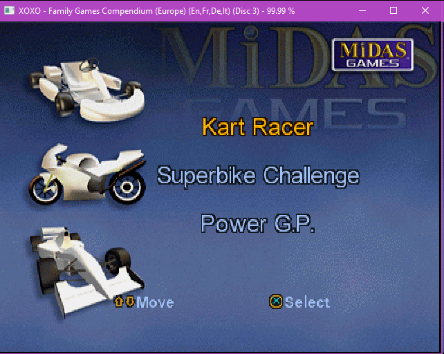 the other two games (bikes and some sorta F1 game) are the same game but with a different HUD and different vehicle physics. I would've liked a few more tracks but this is a pretty decent racing game