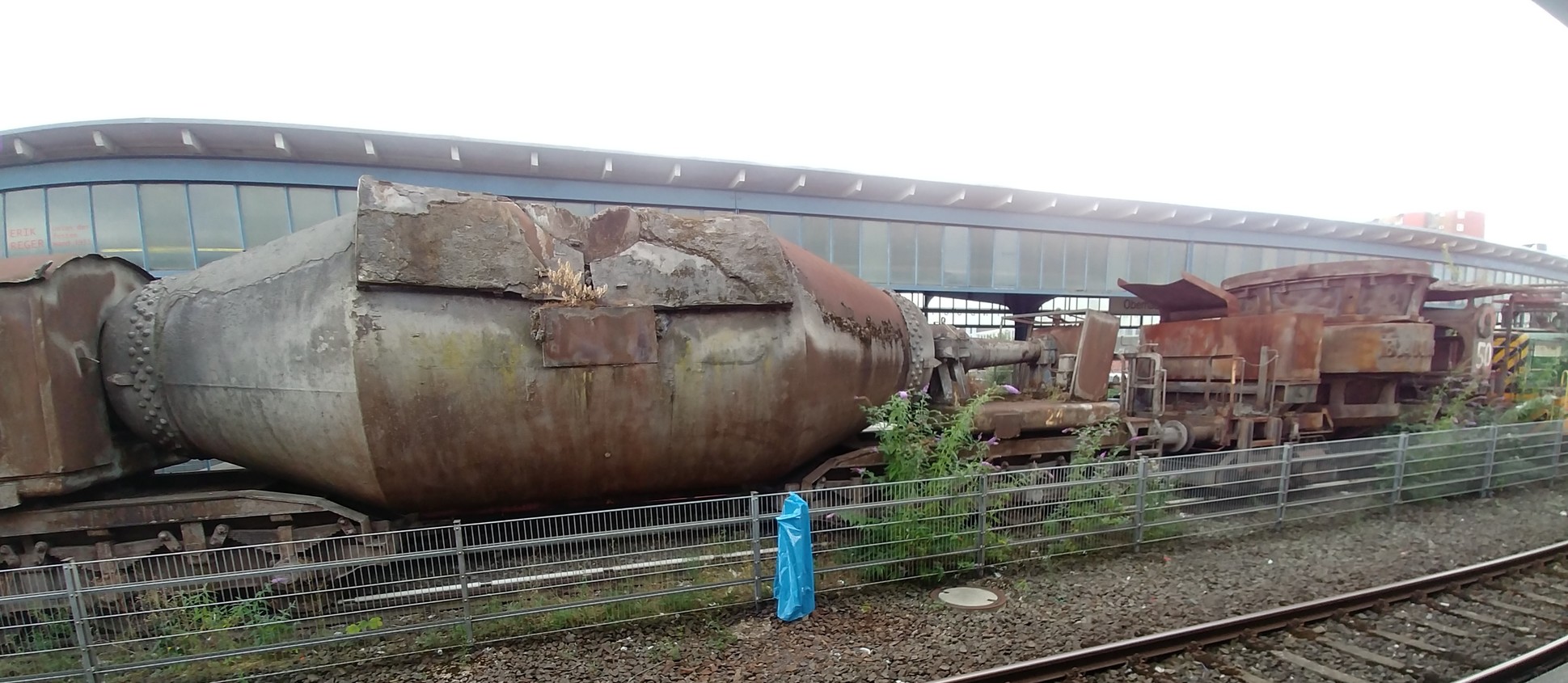 I have to wait in Oberhausen but I get to look at this wagon that was used to transport molten iron/steel once