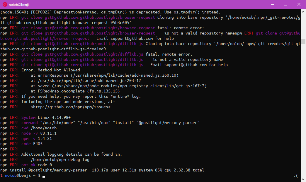 gdi I just want to use mercury.postlight.com/web-pars in a program why is node so complicated