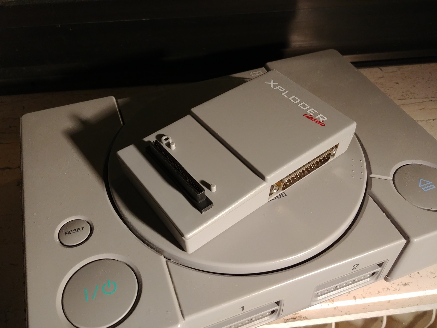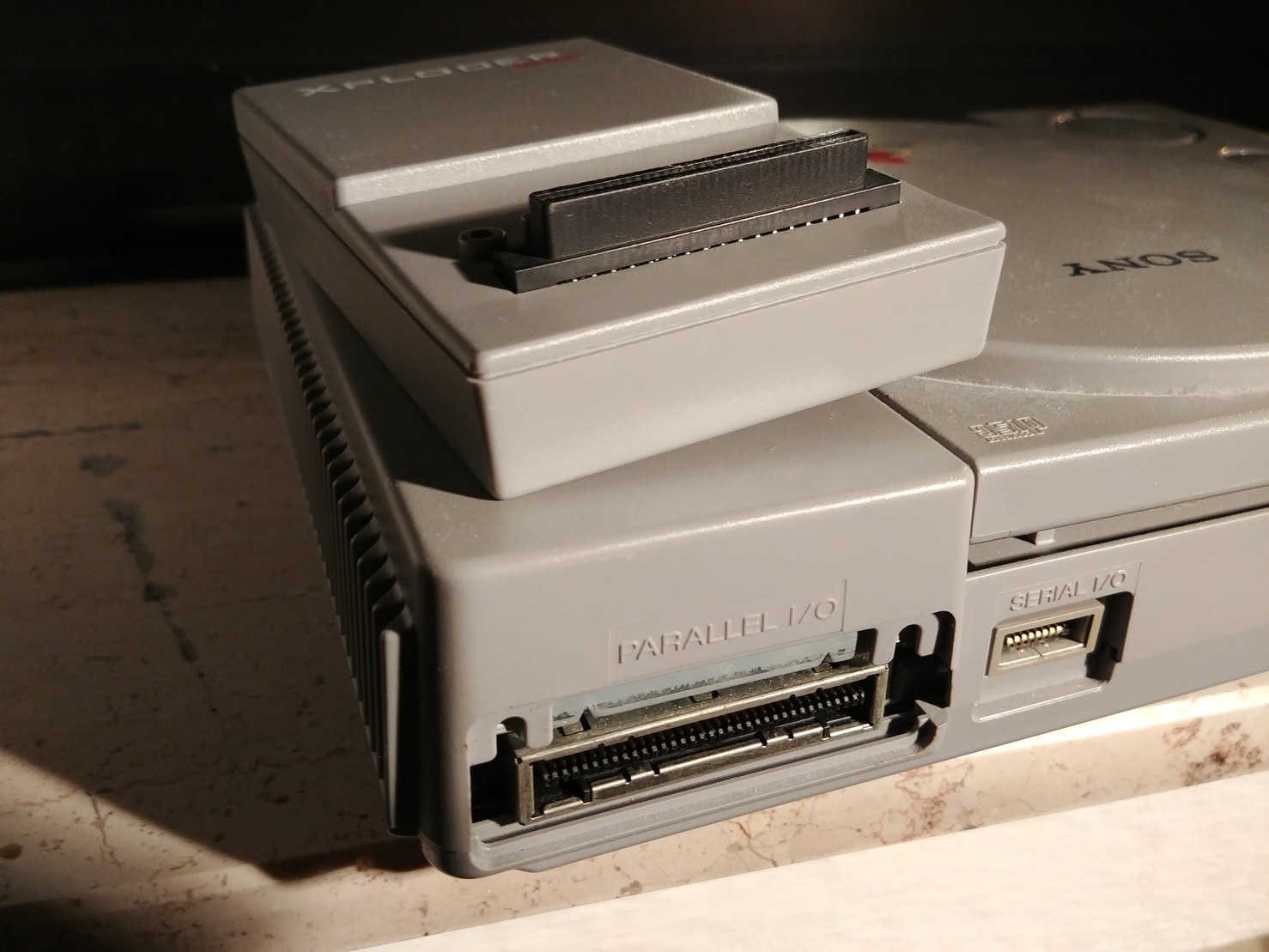 Took a few shots for context, it plugs into the parallel port on early-ish PlayStation models and has basically full access to the system from there. And because it also has a parallel port and you can reflash the firmware it can be used as a development tool